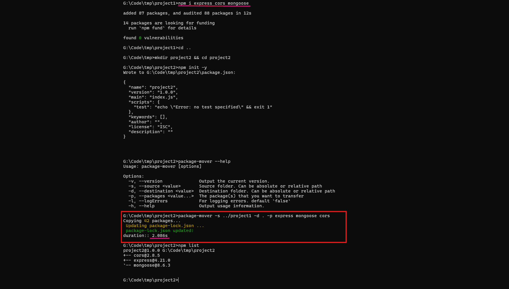 No worries. Package-Mover allows you to copy any packages and all their dependencies from one NPM project to another in seconds, without needing an internet connection.